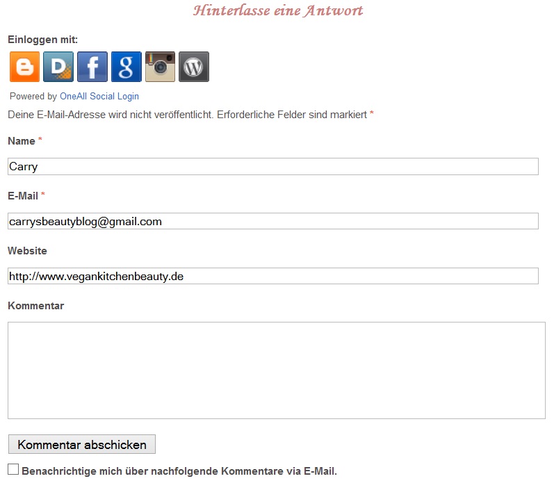 Das Social Login Plugin habe ich nur durch Zufall entdeckt. Damit könnt ihr Leser euch – wenn ihr möchtet – mit einem Social Media Account einloggen und damit kommentieren. Sehr praktisch z.B. um seinen Blogspot Blog oder Instagram Account im Namen zu verlinken. Leider ist die Twitter Option defekt. Ansonsten kann man natürlich ganz normal nur mit Name und eMail Adresse kommentieren.