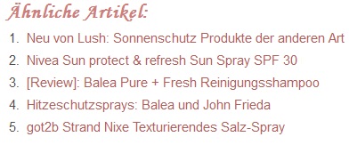 Dieses Plugin verlinkt unter den einzelnen Blog Posts thematisch passende Artikel welche sowohl anhand der Kategorien als auch nach den Überschriften und dem Text zusammengestellt werden. Als Admin sehe ich in Klammern dann auch noch eine Zahl, wie hoch die thematische Übereinstimmung ist. Es lässt sich auch noch je nach Wünschen konfigurieren, z.B. kann ich Bilder zu den Posts darstellen lassen usw. Für mein aktuelles Design finde ich es aber so passender und unübersichtlicher.