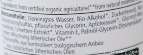 “Drei Funktionen in einem Schritt: 1. Die Formulierung mit Bio-Limetten-Extrakt und biologischem Apfelwasser reinigt die normale und Mischhaut sanft, aber gründlich und befreit sie so von Schmutzpartikeln und überschüssigem Hautfett. 2. Make-up-Entferner: Entfernt wasserfestes Make-up und Augen-Make-up auf sanfte und gründliche Weise. 3. Klärung und Tonisierung: Die Haut wird geklärt und erfrischt, ohne dabei auszutrocknen und ist somit optimal auf die anschließende Pflege vorbereitet.”
