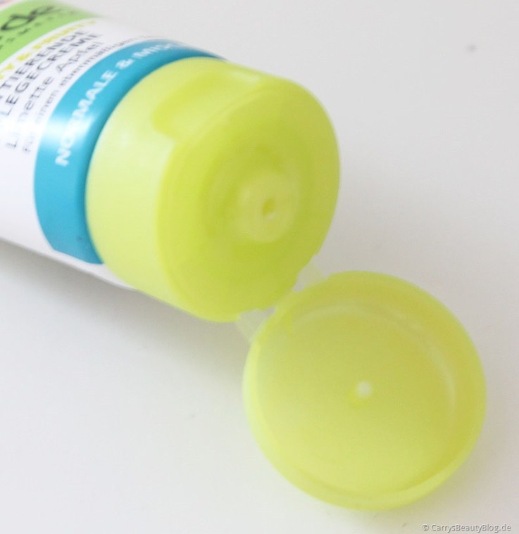 Die Tube selbst ist im gleichen Design gehalten, bietet jedoch ein klein wenig weniger Informationen. Der Verschluss ist in einem hellen, gelblichen Giftgrün gehalten.