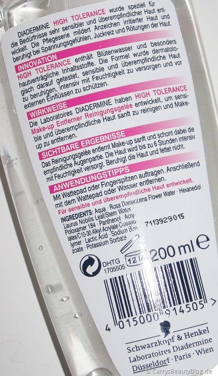 Ich hoffe bei euch allen stehen die Pläne für heute Abend bereits und ihr freut euch schon sehr auf den Jahreswechsel. Vorher habe ich noch eine kleine Review für euch, und zwar über das Reinigungsgelée, welches auch als Make-up Entferner genutzt werden kann, aus der High Tolerance Reihe von Diadermine. Dieses befindet sich seit mein letztes Reinigungsprodukt leer geworden ist in der Nutzung, also schon einige Wochen und somit ist es höchste Zeit, euch davon zu berichten.