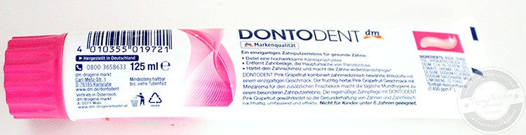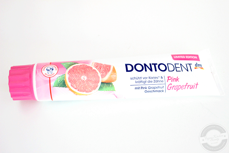 Jedes Jahr gibt es von DontoDent, einer Hausmarke von dm, eine limitierte Zahnpasta mit ungewöhnlicheren Geschmacksrichtungen. Letztes Jahr gab es z.B. Vanilla Mint, davor Cherry Mint und dieses Jahr ist es Pink Grapefruit an der Reihe. Durch den Blogger-Newsletter kam ich in den Genuss diese sowie die passende Mundspülung (Review folgt) zu testen. Wenn ich sage Genuss hat das etwas zu heißen, denn Grapefruit mag ich normalerweise überhaupt nicht :)