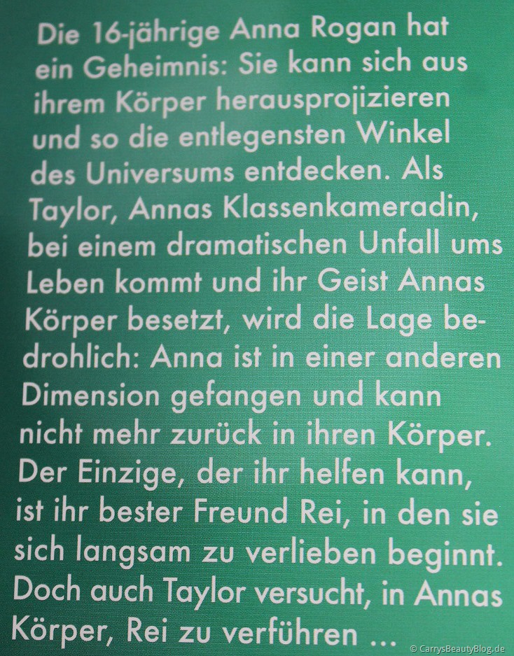 Die Idee der Geschichte finde ich echt genial. Es geht um Astralreisen und ein Mädchen, welches sich somit aus seinem Körper projizieren und in sekundenschnelle an jedem Ort der Welt sein kann. Von solchen Geschichten habe ich bisher wenig (bis gar nichts) gehört und war daher sehr gespannt auf dieses Buch – und wurde nicht enttäuscht!