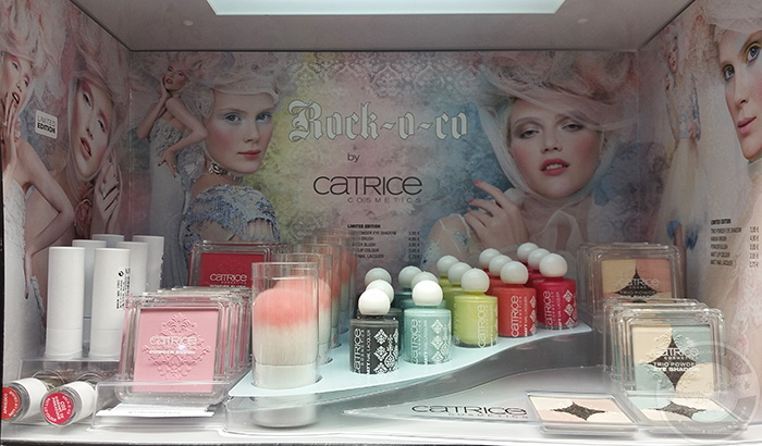 Im Catrice Regal fand ich eine neu aufgestellte und völlig unangetastete Rock-o-co LE von Catrice vor – da macht das Swatchen doch gleich viel mehr Spaß :) Leider gab es von den beiden Rouges keine Tester, dafür konnte ich mir aber von den anderen Produkten ein genaueres Bild machen :)