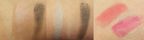 Die beiden Lippenstifte sind relativ gut pigmentiert und haben eine gute Konsistenz. Beim Swatchen gleiteten sie problemlos über die Haut. Der Kabuki Pinsel ist wunderbar weich und geschmeidig. Hätte ich nicht schon genug Pinsel hätte ich ihn mir glatt gegönnt :)