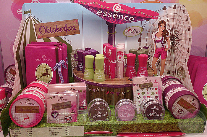 Gestern habe ich im Brückencenter in Ansbach mein Glück versucht und nach der 2m Theke von Catrice Ausschau gehalten, welche ab dem 01.09. dort aufgebaut sein sollte. Leider war dies noch nicht der Fall, doch dafür konnte ich eine prall gefüllte Limited Edition von essence vorfinden, die Oktoberfest LE. Sie war sogar so prall gefüllt, dass nebenan noch weitere Adressbücher und Blushes lagen ;)