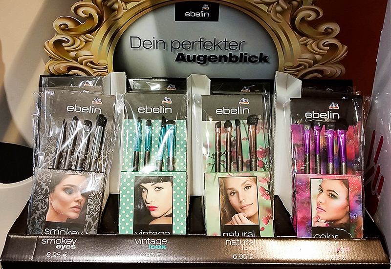 Doch leider wirkten die Pinselsets in der „Realität“ nicht mehr so ansprechend und hochwertig. Es sind stets Schwämmchen-Applikatoren enthalten, die Härchen der Pinsel wirken weich und insgesamt von der Form her nicht ausgereift. Dass der Aufsteller nach über einer Woche noch immer prall gefüllt ist spricht für sich – ebelin, das könnt ihr besser! :)