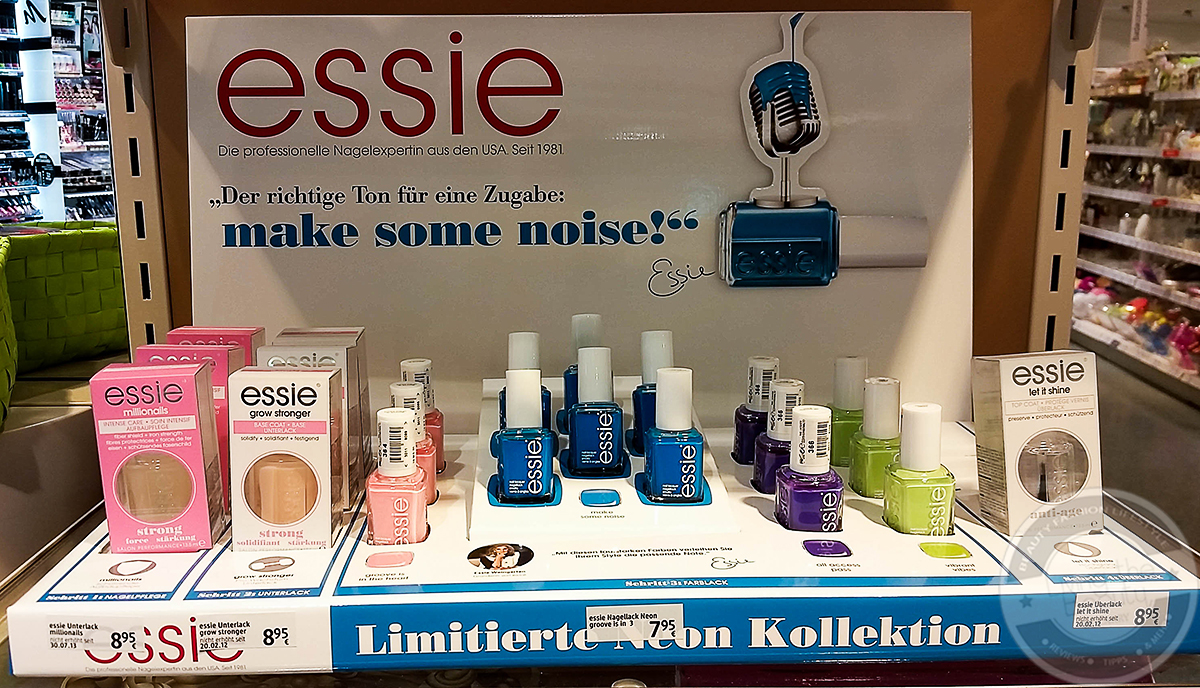 Neben der Cashmere Matte LE von essie gibt es zur Zeit auch eine weitere Limited Edition in den Drogerien, die diesjährige Neon LE namens „make some noise“. In dieser sind 4 Lacke vertreten, doch wem sie allesamt gefallen der sollte sich ggfs. das 6er Set via Amazon* oder eBay* gönnen, denn in den USA gibt es 2 Farben mehr in dieser Kollektion. Zudem zahlt man für das 6er Set oft so viel wie für 3 oder 4 einzelne Lacke in Deutschland, das lohnt sich vor allem dann, wenn man mit den schmalen US Pinseln ebenfalls zurecht kommt.