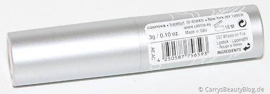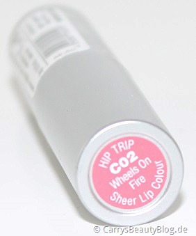 Hier hat mir lediglich der linke und dunkelste Lippenstift “C02 Wheels on Fire” so wirklich gefallen, die beiden anderen waren mir einfach zu blass.