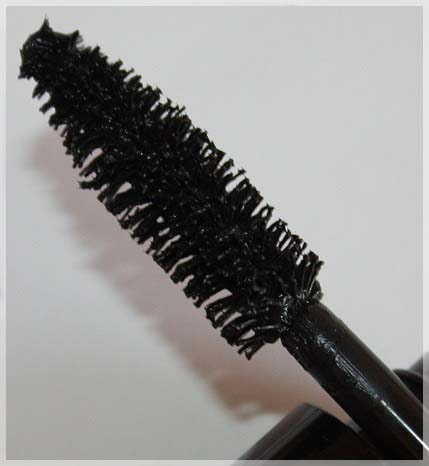 Nach 2 Schichten zaubert er bei mir ein wunderschönes Volumen und ich steh auf extrem getuschte Wimpern deshalb stört mich das nicht ,