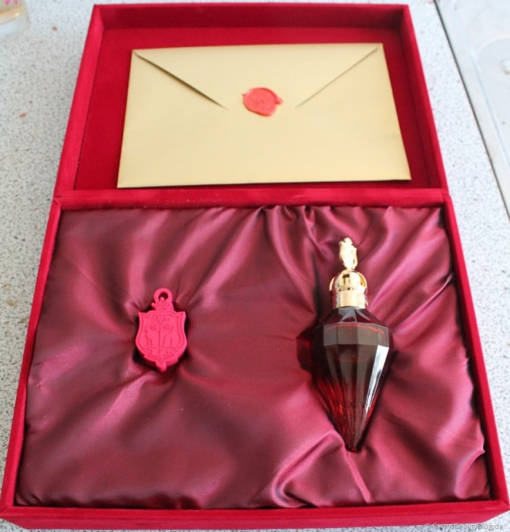 Vor ein paar Wochen erreichte mich eine sehr hübsche, königliche Post bzw. ein Päckchen. Darin enthalten war die Promo für das neue Parfum von Katy Perry – Killer Queen. Bereits beim Beauty Blogger Café in Berlin hatte ich die Gelegenheit, daran zu schnuppern und war schon dort sehr vom Duft angetan. Umso mehr freute ich mich dann natürlich über dieses hübsche Paket. Da hat sich Coty wirklich viel Mühe gegeben :) Das Parfum wird dann ab September erhältlich sein :)