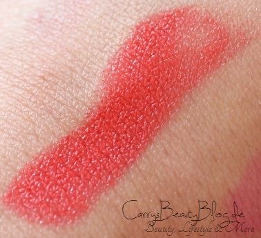Das ist das einzige Produkt, was mir nicht auf Anhieb gefallen hab. Zwar sind meine Lippen momentan sehr trocken, aber andere Lippenstifte betonen dies nicht so sehr wie dieser hier. Daher ist auch der Swatch so bescheiden, tut mir leid ^^” Ich hoffe, dass er sich bei “normalen” Lippen besser verhält. Ich werde berichten! Wäre aber sehr schade wenn nicht, denn die Nuance an sich würde mir sehr gut gefallen.