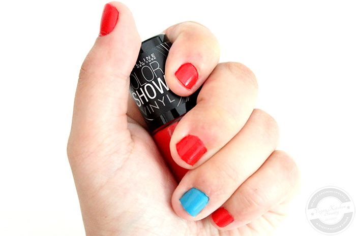 Die Haltbarkeit der Color Show Vinyl Lacke von Maybelline ist durchschnittlich, am zweiten Tag hatte ich leichte Tipwear, zwei Tage später habe ich die Lacke dann entfernt.