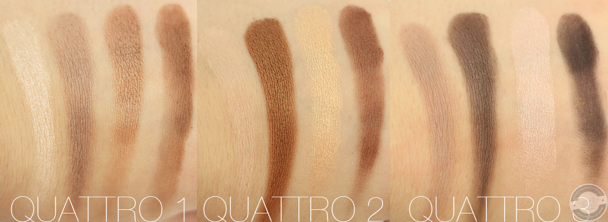 Die The Nudes Palette von Maybelline enthält sowohl schimmernde als auch matte Nuancen von sehr hellem beige bis hin zu schwarz, jede Kombination ist perfekt aufeinander abgestimmt und in sich stimmig. Beim ersten Swatches zeigt sich, dass die Farben überwiegend sehr gut pigmentiert sind, lediglich die helleren Nuancen schwächeln in dieser Hinsicht ein wenig, auf dem Auge werden sie wohl kaum voneinander zu unterscheiden sein. Die Konsistenz der Lidschatten ist sehr angenehm, nicht zu pudrig aber auch nicht wirklich krümelnd oder kalkig.