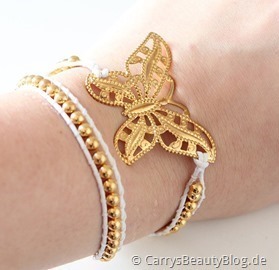 Entschieden habe ich mich übrigens für das “Wickelarmband mit Schmetterling” in Gold für 39€, welches leider inzwischen schon ausverkauft ist, sowie für das “Armband Gold mit Türkis”, was 24€ kostet.