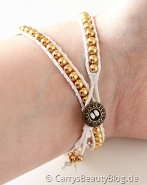 Als ich mein zweites Armband gesehen hatte dachte ich erst, wie klein es doch aussieht. Das Band passt aber optimal ums Handgelenk und rutscht nicht ständig am Arm hin und her. Perfekt! Auch dieses kann ich ohne Probleme alleine anlegen.