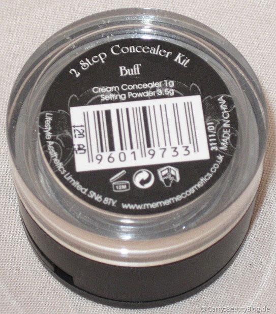 Der erste Eindruck: Die Produkte von MeMeMe gehören für mich zu den wenigen, deren Verpackungen immer richtig stabil sind und hochwertig aussehen, aber dennoch nicht viel kosten. Auch beim Concealer Kit setzt sich diese Linie fort, der schwarze abschraubbare Deckel auf dem durchsichtigen, stabilen Tiegel macht echt was her. Im oberen aufklappbaren Teil befindet sich der Cremeconcealer sowie ein im Deckel integrierter Spiegel. Schraubt man diesen ab, so kommt man zum Puder, welches bei einem Neuprodukt noch mit einer Folie versiegelt ist. Natürlich sind auf einem farblich passenden und genau so edlem Etikett noch wichtige Hersteller- sowie Produktangaben abgedruckt.