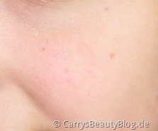 Obwohl der Concealer eher fest von der Konsistenz her ist, lässt er sich durch die eigene Körperwärme, welche ihn etwas flüssiger werden lässt, gut mit dem Finger aufnehmen und auf den gewünschten Stellen verteilen bzw einarbeiten. Direkt wird deutlich, dass der Concealer Unreinheiten nicht komplett abdecken kann, meine Rötungen sind zwar deutlich schwächer, aber meine Leberflecken sind nur minimal heller geworden.