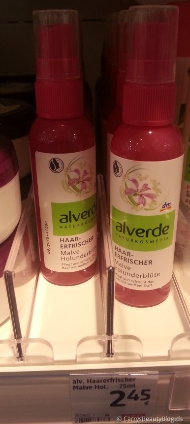 Zum einen habe ich den Haarerfrischer “Malve Holunderblüte” von alverde entdeckt. Der Geruch hat mir echt sehr gut gefallen, jedoch war ich aufgrund des Alkohols an zweiter Stelle der Inhaltsstoffe etwas skeptisch und warte daher erst einmal Reviews ab :)