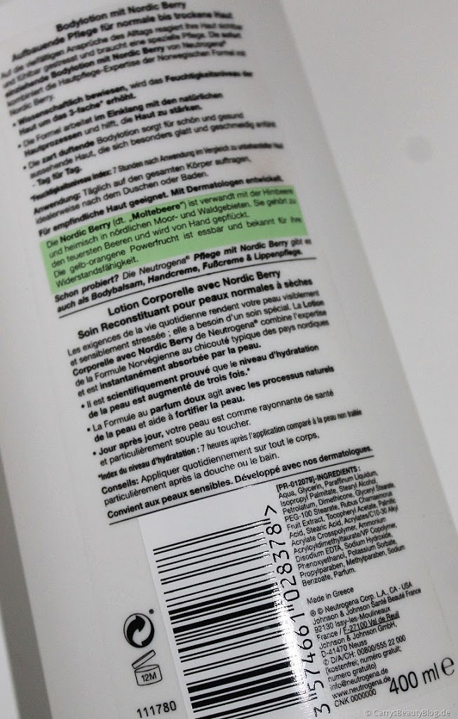 Vor einiger Zeit kam ganz neu die Nordic Berry Serie von Neutrogena auf den Markt. Sie fand zurecht sehr großen Anklang und so habe auch ich mir einige der Produkte zum Testen zugelegt. Nachdem ich euch die Handcreme schon >hier< vorgestellt habe, folgt heute die passende Bodylotion.
