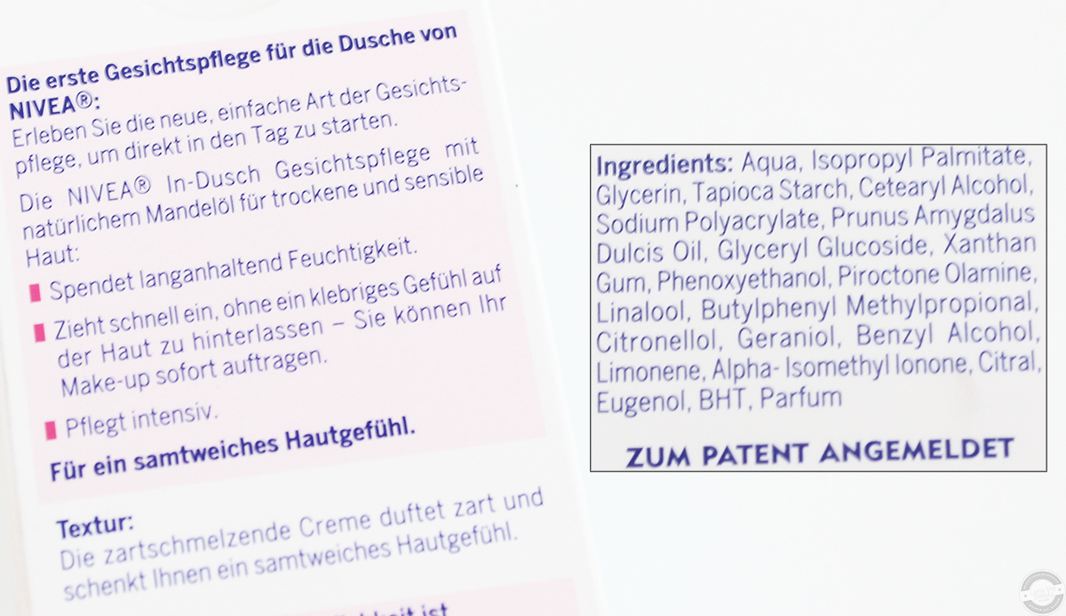 Neben dem In-Dusch Waschcreme & Make-up Entferner von Nivea habe ich mir auch die In-Dusch Gesichtsfpflege für trockene und sensible Haut gekauft und seitdem täglich im Gebrauch.