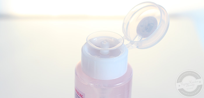 Der Pumpspender reagiert sehr gut und bereits ein oder zwei Pumpstöße genügen, um das Wattepad zu durchtränken und über das gesamte Gesicht zu streichen. Obwohl das Gesichtswasser ein erfrischtes Gefühl hinterlässt, wird meine Haut keineswegs ausgetrocknet. Jedoch kann ich auch keinen besonders pflegenden Effekt feststellen, dafür werden Make-up Reste und sonstige Hautbeläge problemlos entfernt.
