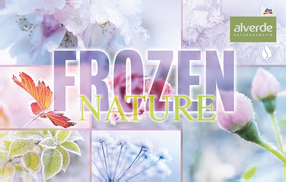 „Die ersten Schneeflocken fallen und funkelnde Eiskristalle zieren die Fensterscheiben. Passend zur winterlichen Idylle verleiht dir die neue Limited Edition Frozen Nature von alverde NATURKOSMETIK einen frostig-schönen Look und bringt dich auch an trüben Tagen zum Strahlen. Dank pflegender Texturen wird deine Haut in der kalten Jahreszeit nicht nur besonders gepflegt, die schimmernden Nuancen garantieren dir auch an den Festtagen einen glamourösen Auftritt!