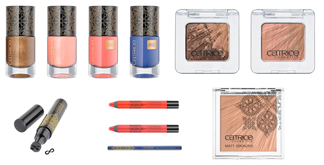 „Ethno und Exotik. Fernweh lockt auf neues Terrain. Lädt ein, auf eine Reise in die Wüste und offenbart die unendliche Schönheit des Orients. Die kommende Ethno Couture ist sommerlich, sinnlich und luxuriös. Ein moderner Mix aus Mustern und feurigen Farben. Den Auftakt des lebendig interpretierten Nomaden-Looks lieferten die Spring/Summer Runway-Schauen, auf denen die Designer orientalisch anmutende Designs mit neuer Lässigkeit präsentierten. Mit der Limited Edition „Nomadic Traces“ by CATRICE wird der aufregende Fashion Trend im Mai 2015 in die Beautywelt gebracht. Helles Rot und elektrisierendes Blau werden mit ruhigem Grau-Braun, warmem Gold, zartem Nude sowie frischem Apricot kombiniert. Must-Haves sind die Powder Eye Shadows und der Matt Bronzer mit außergewöhnlicher Relief-Prägung sowie der Tattoo Pen, der das „Infinity“-Symbol auf die Haut zeichnet. Das Muster der Unendlichkeit – by CATRICE.“
