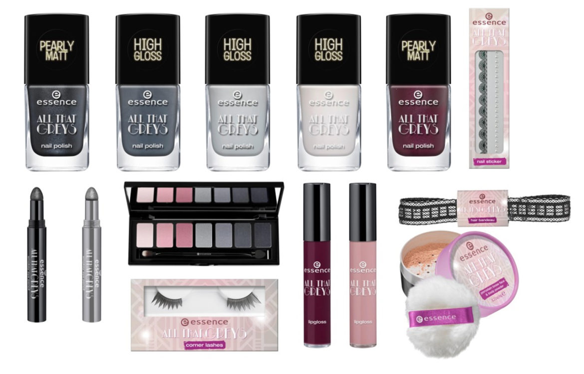 „Grey shades! Mit der neuen trend edition „all that greys“ macht essence von Mitte November bis Mitte Dezember 2015 eine Zeitreise in die “Roaring Twenties“, bekannt für tosende Parties und zahlreiche Hollywood-Beauties. Das Sortiment bietet spannende Produkte, die partytauglich sind und sich rund um die Trendfarbe 2016 – Grau – bewegen. Edle Grautöne treffen auf rosig-rote Nuancen und verschmelzen zu einer perfekten Verbindung des Retroglam der 20er Jahre. Zu den It-Pieces gehören die Lidschattenpalette mit sieben pudrigen Farben und unterschiedlichen Effekten, der smokey eye pencil mit gefedertem Schwamm-Applikator und die corner lashes für tolle Wimpern-Highlights. Das hair bandeau im Charleston-Look rundet den ausdrucksstarken Look ab. Let`s celebrate… mit essence!„