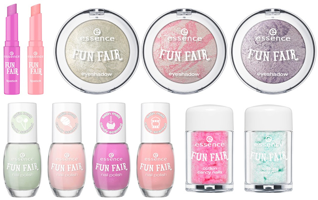 „Aufregung und Spaß – auf der Kirmes garantiert! Mit der neuen trend edition „fun fair“ macht essence von Mitte Juli bis Mitte August 2015 eine fantastische Tour über den Jahrmarkt. Der Duft von Zuckerwatte, Popcorn und kandierten Äpfeln liegt in der Luft und spannende Attraktionen sorgen für ausgelassene Stimmung und fröhliche Besucher. Die Farbwelt besteht aus Pastelltönen wie Vanille, Apricot, Rosé, Mint und Lavendel und Pink als Kontrast. Highlights sind die vier satin matten Nagellacke in Bonbon-Farben mit jeweils vier verschiedenen Candy-Düften und die beiden cotton candy nails für einen coolen Zuckerwatten-Effekt auf den Nägeln. Ein weiteres Must-Have sind die stretchy Haargummis hübsch angeordnet im Lolli-Design. Noch eine Runde aufs Riesenrad… mit essence!“