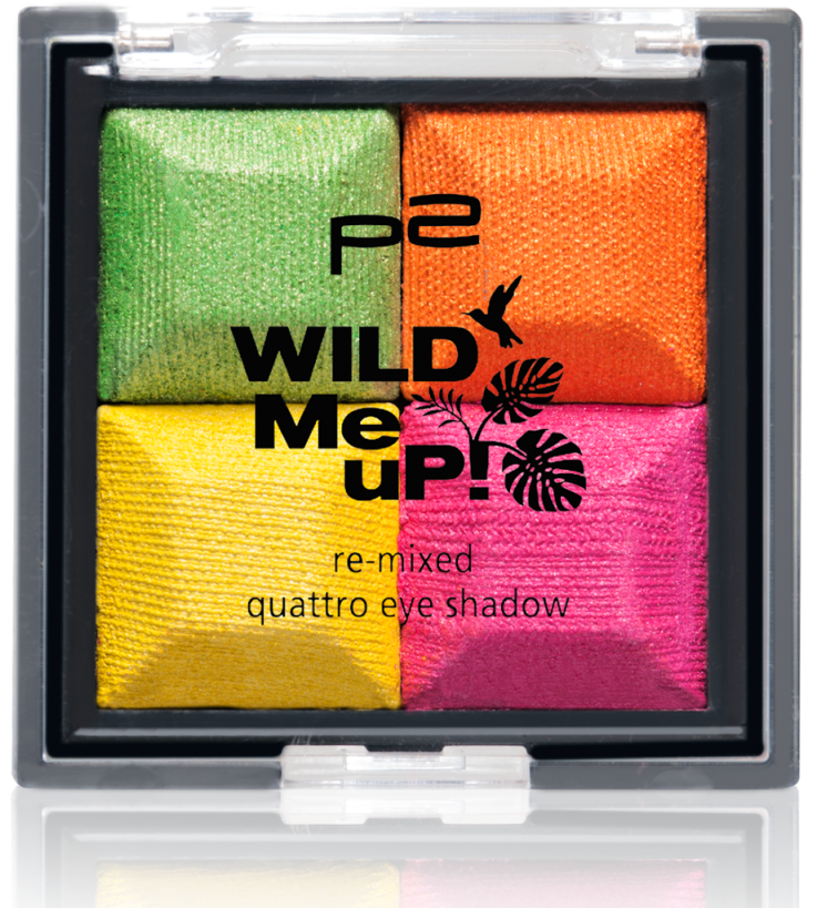 Come to the wild side! Mit den Produkten in exotischer Farbenpracht der WILD Me uP!-LE von p2 cosmetics kannst du deiner Kreativität freien Lauf lassen! Ob grüne Fake Lashes, violette Mascara oder Lidschatten in leuchtend tropischen Farben, erlaubt ist alles, was gefällt. Auch für Lippen, Teint und Nägel ist gesorgt, denn mit deckendem Lipgloss und farbintensivem Nagellack bringst du auch diese zum Strahlen.