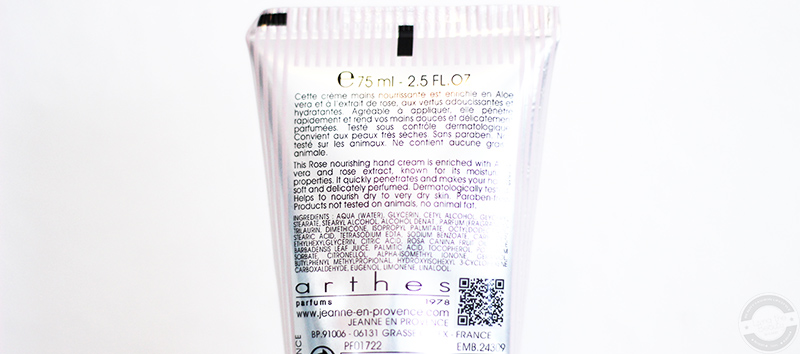 Die Rose Envoutante Handcreme von Jeanne en Provence kommt in einer sehr flexiblen Plastiktube, welche in silber, weiß und rosa gehalten ist. Das Design erinnert sehr an den Vintage-Stil und bekommt durch die Farbkombination, das Logo sowie die Rose einen romantischen Look. Natürlich sind auch hier sämtliche Angaben zu Produkt und Hersteller aufgedruckt.
