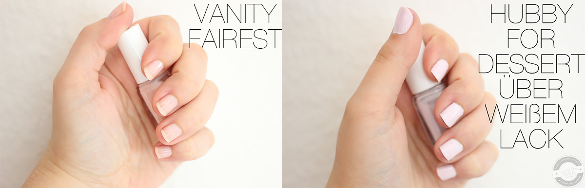 Vanity Fairest war für mich die wohl größe Enttäuschung, seit ich meine Liebe zu den essie Lacken entdeckt habe. Obwohl es „nur“ ein French Lack ist, habe ich dennoch erwartet, dass er mit drei Schichten einigermaßen gut deckt – so bin ich es auch von Spaghetti Strap gewohnt. Auf dem Bild seht ihr vier Schichten, das Nagelweiß ist hier leider noch immer deutlich zu erkennen, einigermaßen deckend wäre Vanity Fairest wohl erst ab der 6. Schicht. Mal sehen ob ich irgendwann einmal French Maniküre mache oder ihn anderweitig verwende. Zum Glück habe ich nur die Minigröße.