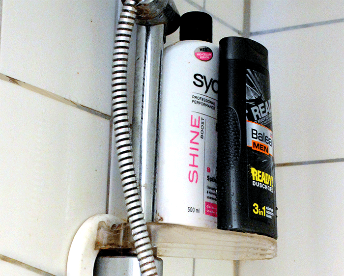 Auf der Ablage der Duschvorrichtung findet man dann noch meine Syoss Shine Spülung die ich momentan fleißig aufbrauche. Genau genommen hatte die mein Schatz noch hier als ich eingezogen bin und er nutzt sie aber nicht – also erbarme ich mich und leere sie. Auch das Duschgel meines Schatzes, das Balea Men „Ready!“ Duschgel findet dort seinen Platz. Bis letzte Woche hat er noch das Energy Explosion Duschgel von Balea men benutzt, aber das scheint aus dem Sortiment genommen worden zu sein. Ich habe ihm dann einfach dieses hier mitgebracht und er findet es sogar besser als das alte.