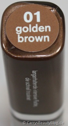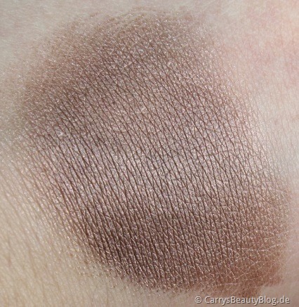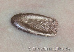 Auch wenn ich an sich lieber Cremelidschatten aus dem Töpfchen mag, komme ich mit diesem hier sehr gut zurecht. Ich tupfe immer erst etwas Farbe auf meine Lider und verstreiche diese dann anschließend mit den Fingern. Das Ergebnis wird super gleichmäßig und auch nicht zu dick oder fleckig. Die Farbe entspricht voll und ganz der Farbbezeichnung – ein schönes Braun mit einem hübschen, goldenen Schimmer.