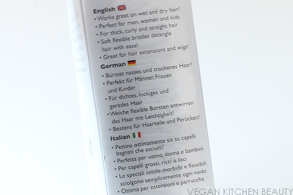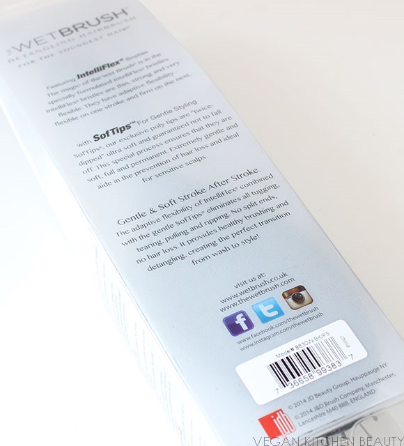 Wie der Tangle Teezer auch kommt die Wet Brush in einer Plastikverpackung, welche das komplette Produkt einschließt. Diese ist rundum milchig bis weiß und enthält sämtliche Angaben zu Produkt und Hersteller sowie die Herstellerversprechen.