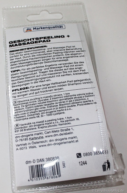 Die Alternative hierfür ist ganz neu auf dem Markt und noch nicht überall erhältlich. Es handelt sich um das “Gesichtspeeling + Massage Pad” von ebelin und kostet lediglich 1,75€.