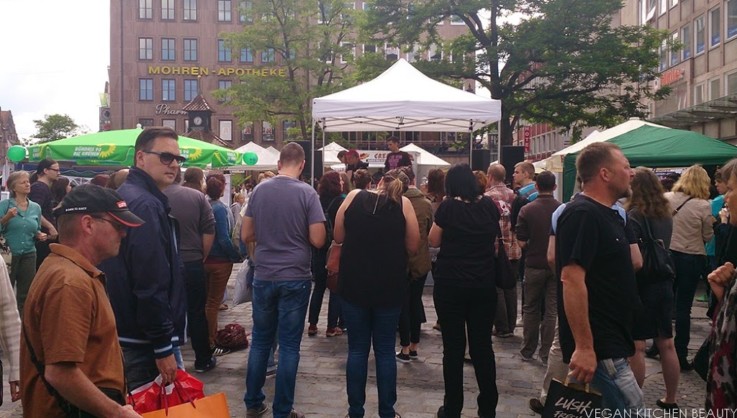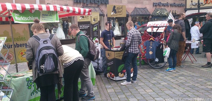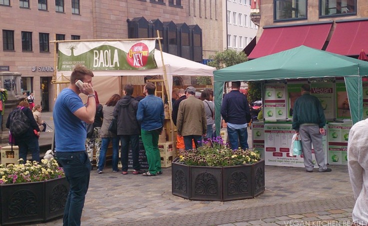Vergangenen Samstag war ich zusammen mit meinem Schatz auf dem Veggie-Straßenfest in Nürnberg. Neben der Rohkost-Messe “Rohvolution” in Speyer im vergangenen Samstag war dies erst mein zweites veganes “Event” und das erste Straßenfest. Dies fand von 11 bis 20 Uhr statt und bot neben verschiedensten Ständen auch eine Bühne auf der stündlich Vorträge und kleine Kochshows stattfanden.