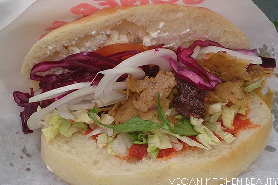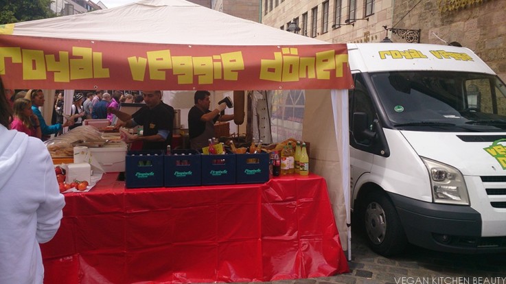 Ich habe mich beim “Royal Veggie Döner” angestellt, welcher seinen festen Laden in München hat und sehr sehr bekannt ist. Schon oft habe ich auf Facebook davon gelesen, daher war ich auch nicht verwundert, dass an dem Stand die Schlange so extrem lange war.