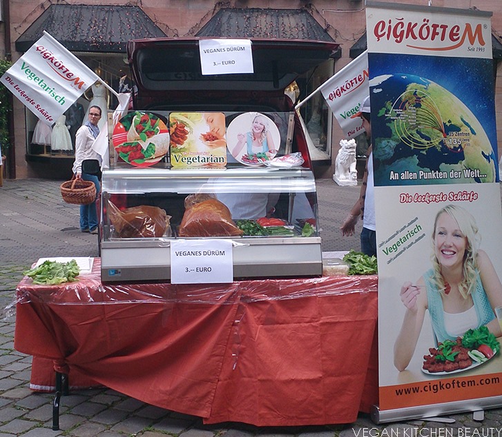 Mein Schatz hat sich dann über den CigköfteM Stand hergemacht. Ich hatte ihm erzählt, dass sie mehrere Filialen in Deutschland bzw. Europa haben und sich großer Beliebtheit erfreuen. Somit ist er quasi auf Nummer sicher gegangen und hat sich für 3€ einen veganen Dürüm geholt.